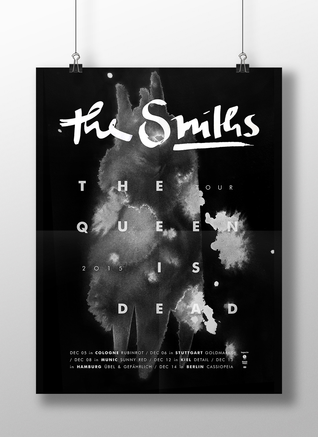 Cover Artwork The Smiths von Semesterarbeit, BA Kommunikationsdesign, Type Design, Prof. Jovica Veljovic, SoSe 2015 Im Kalligrafiekurs unter der Leitung von Professor Veljovic ist unter Anderem ein Cover Artwork für die Band The Smiths entstanden. Zusätzlich sind Taschen, Shirts, Plakate und Eintrittskarten entwickelt werden.